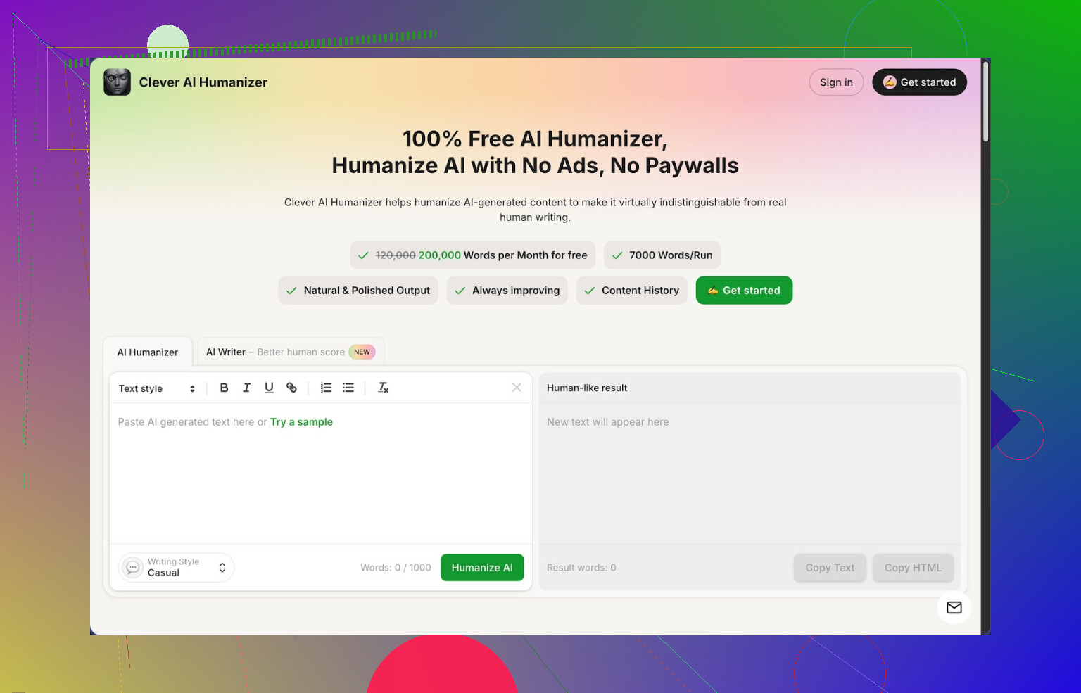 Clever Ai Humanizer è il sostituto gratuito più vicino a Humanize AI Pro in termini di utilità pura, ma il vero vantaggio arriva quando lo combini con piccoli interventi manuali e un secondo strumento gratuito, invece di affidarti a un unico “humanizer magico”. Questo mix mantiene il testo naturale, resta gratuito e riduce le probabilità che tutto venga etichettato come scritto da una macchina.