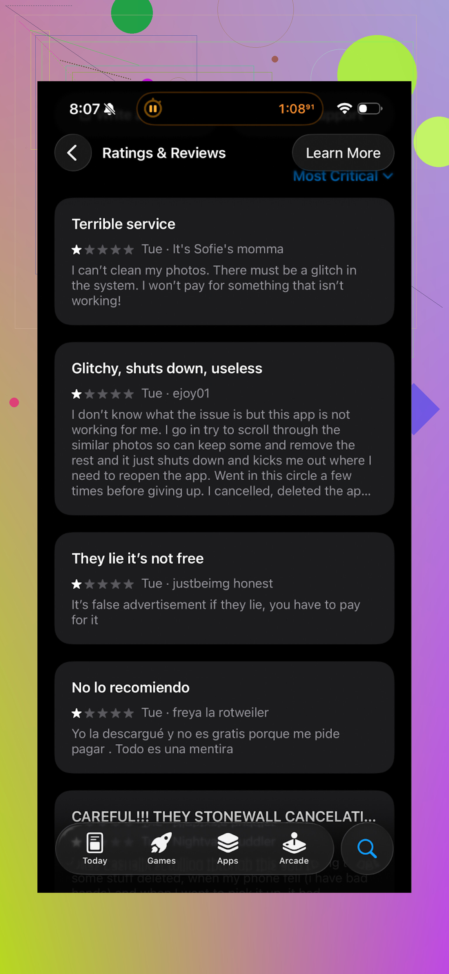 Real user feedback matched what I felt. Not the sponsored stuff, the regular App Store reviews: