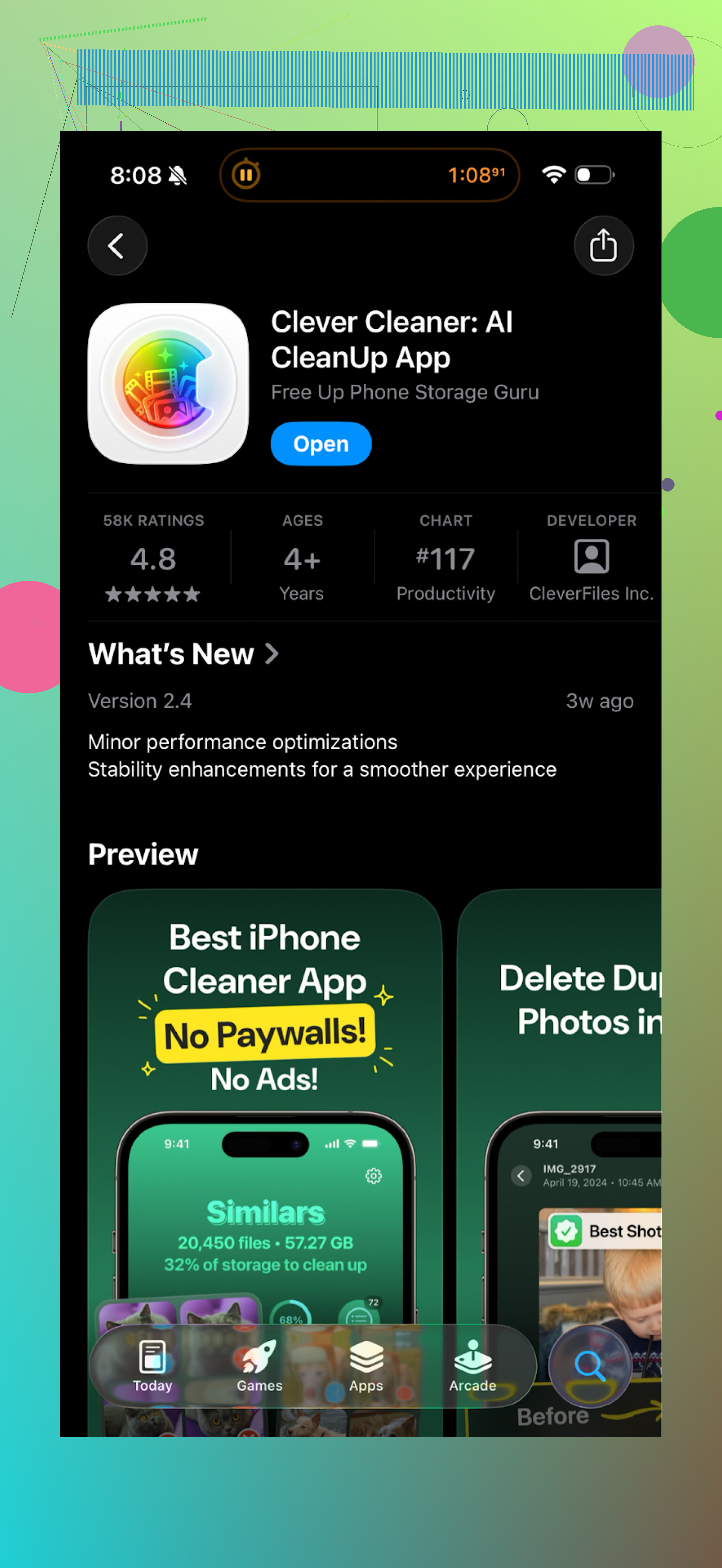 I installed Cleanup App (Phone Storage Cleaner) after my iPhone started throwing the “storage almost full” popup every single day. Photos app was a mess, videos everywhere, bunch of random screenshots. I wanted something quick, not a weekend project.