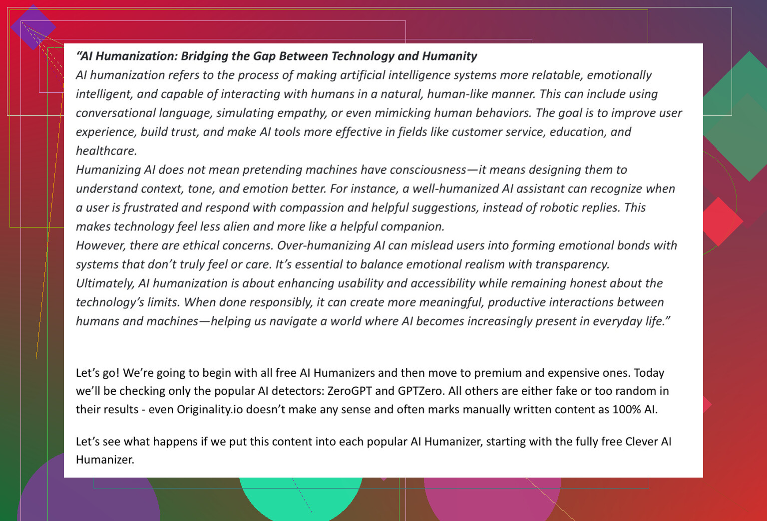 And you know what? See for yourself — there was practically zero difference on the detection tests. But what really got me was the way it started inserting deliberate typos, like “teh” instead of “the.” Does anyone WANT that in their real content? Not sure how passing for a human means writing like a distracted sixth grader.