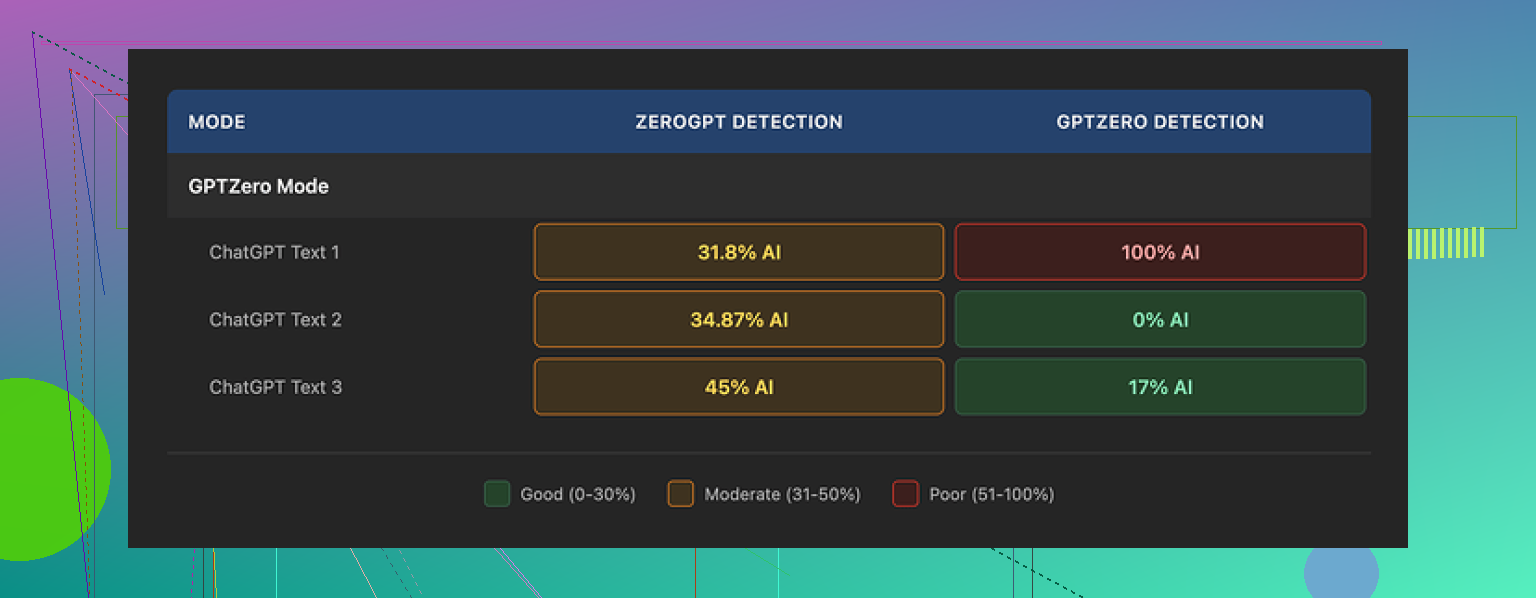 • Some “humanized” outputs still get flagged high on GPTZero or ZeroGPT.