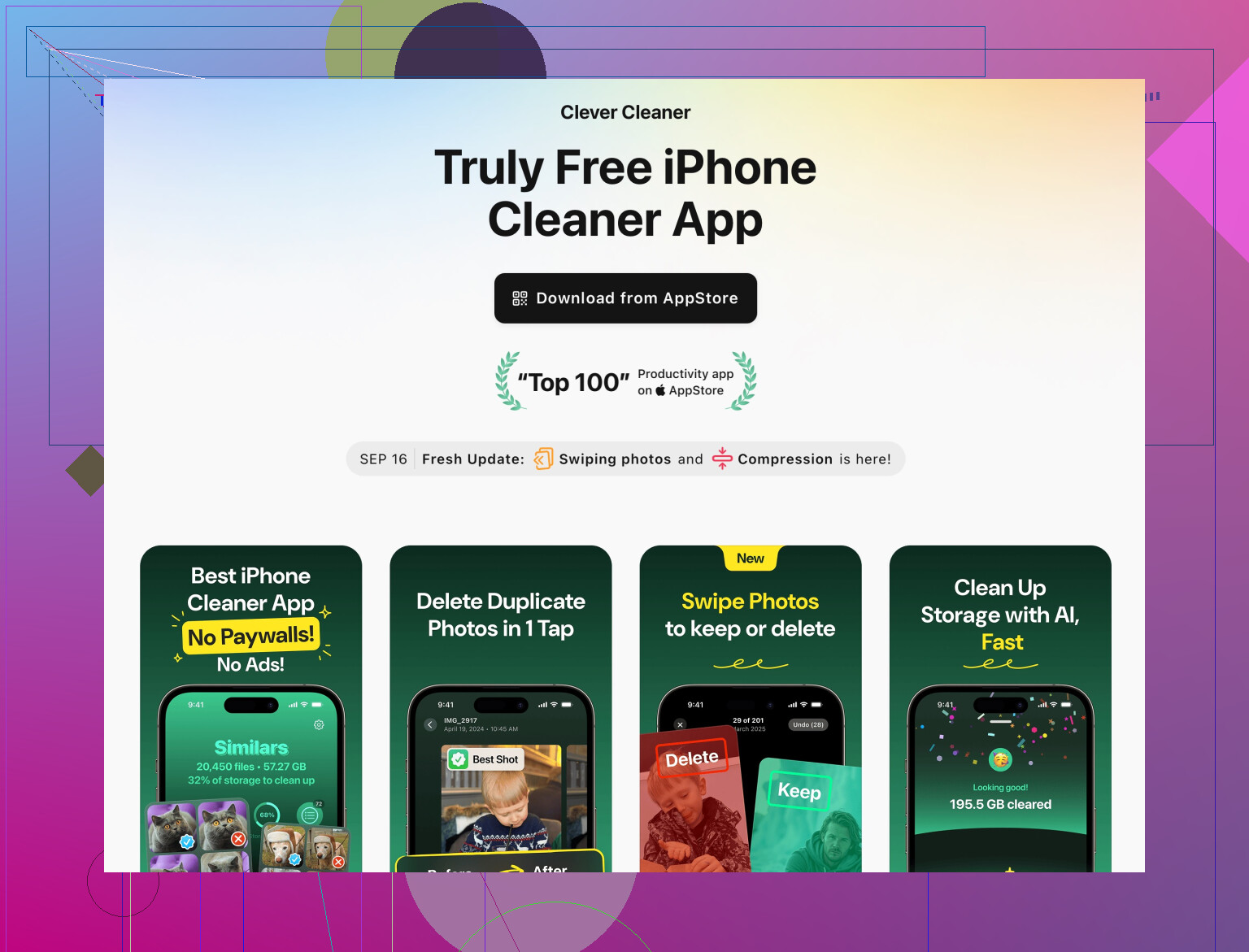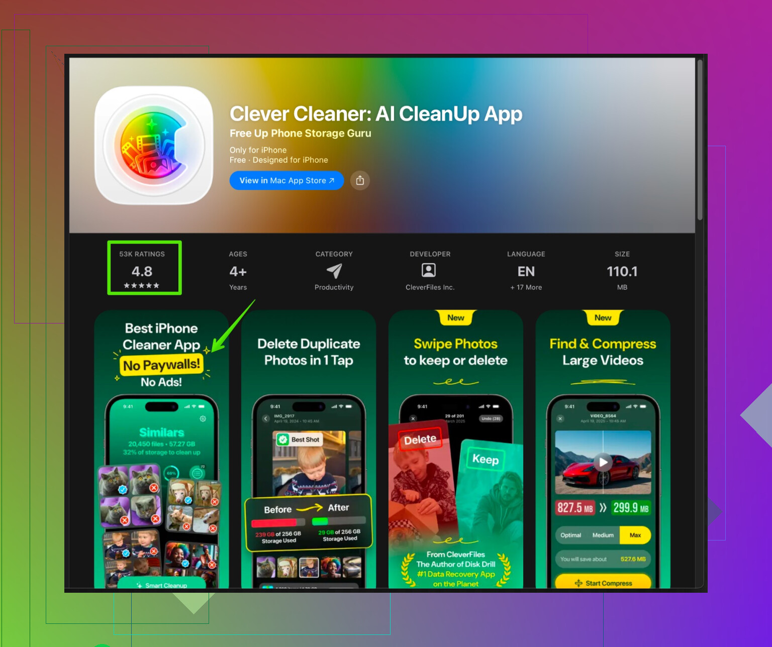 In plaats van de hele App Store af te speuren, kun je deze slimme iPhone‑cleaner en opslagoptimalisatietool bekijken, die je redelijk veilig door het opruimen van digitale rommel heen loodst.