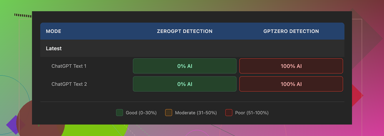 The funny part is their built-in “AI detector” widget on the site. It showed a nice green “Human-written” label across most of the detectors it integrates with. For GPTZero, that label was flat-out wrong. Their tool said safe. The actual GPTZero site said the opposite.