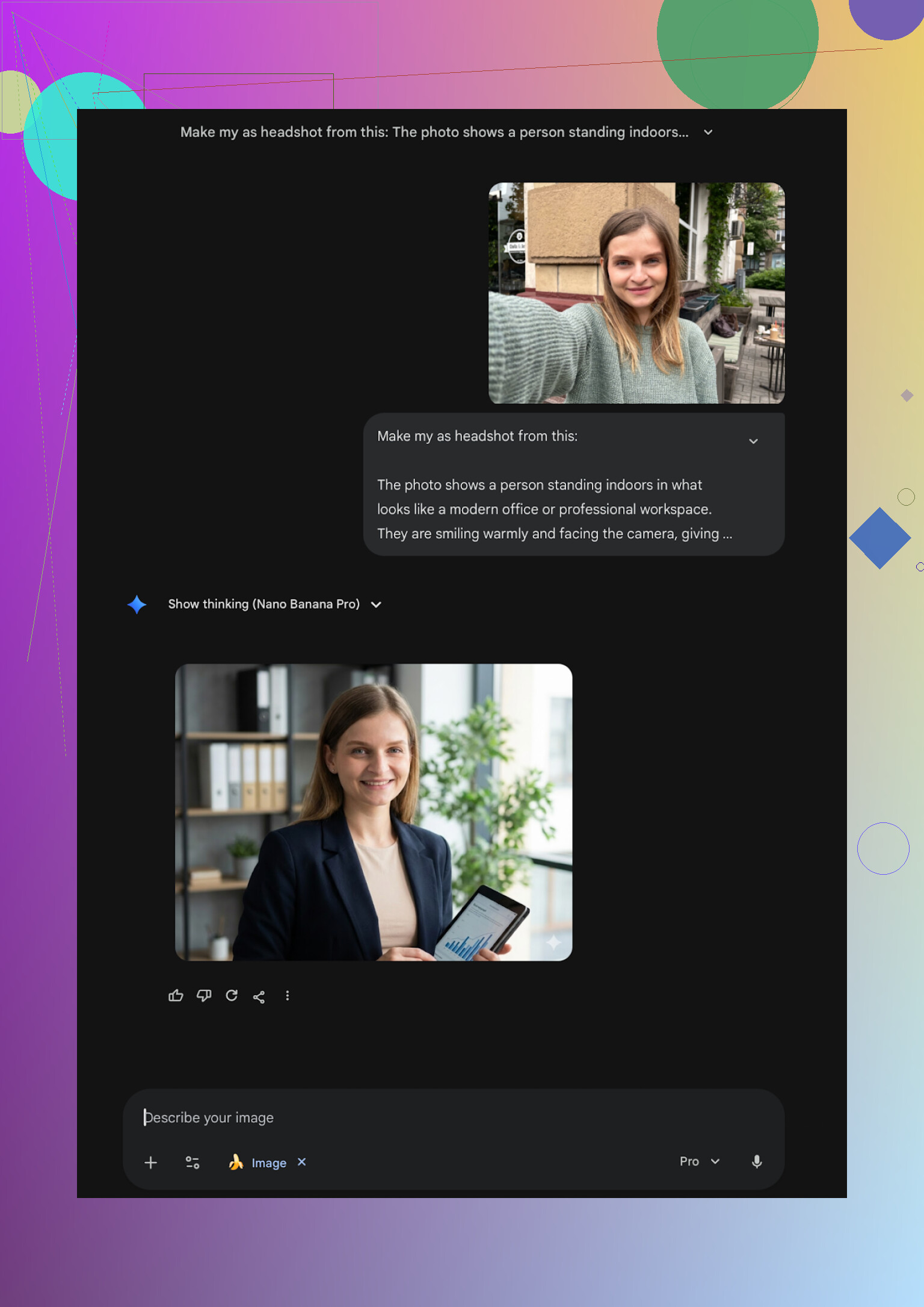 The practical effect is you stop worrying about inventing prompts and simply tap through presets like “formal studio”, “business casual”, “tech founder style” and so on. -