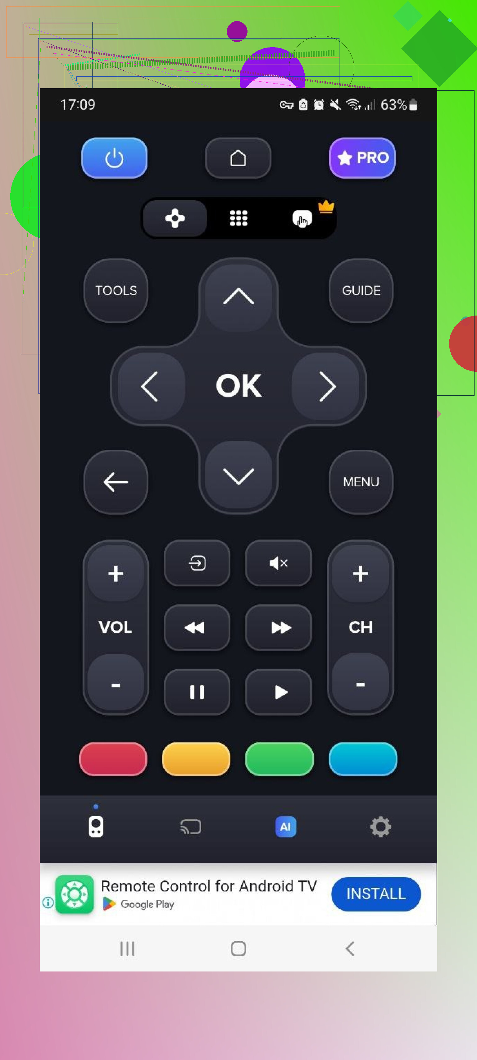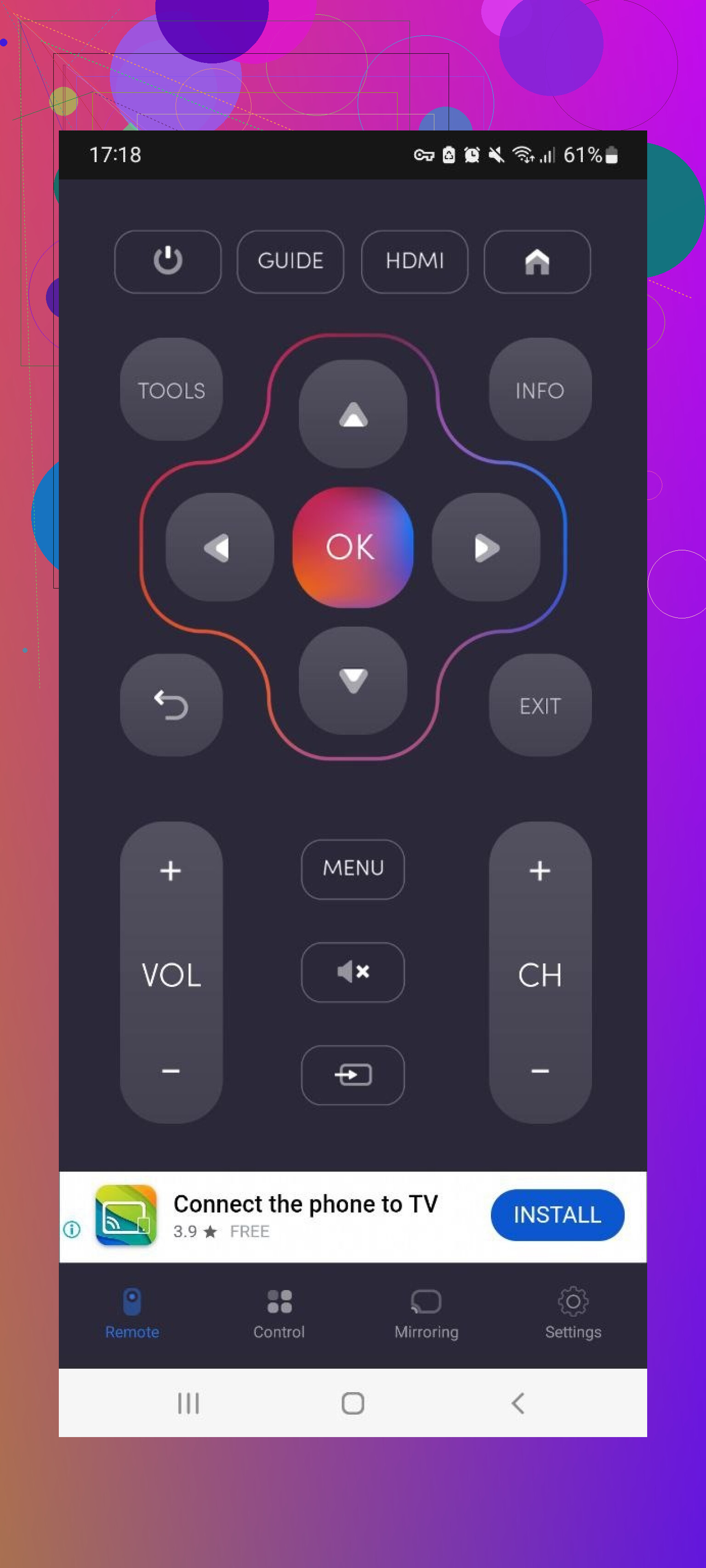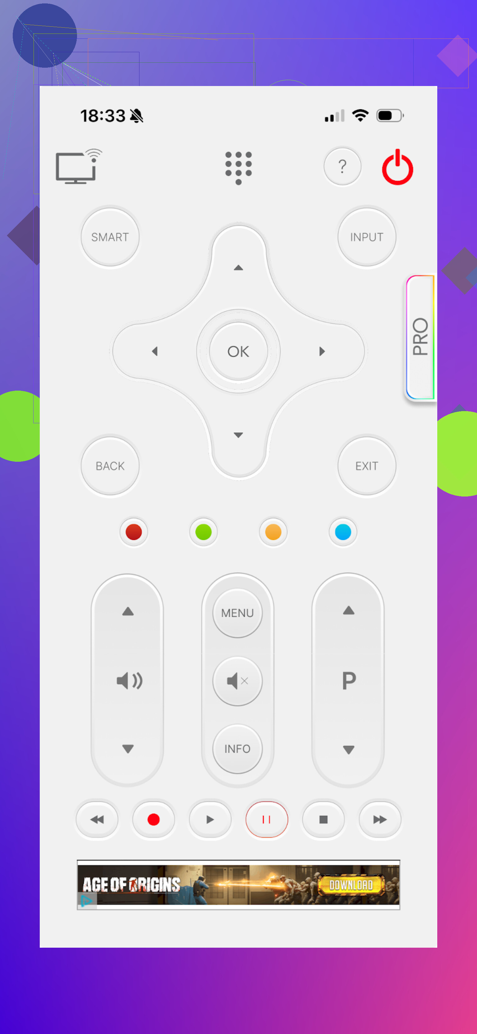 This app focuses on Wi‑Fi control and supports many brands. The free tier gives you basic buttons for volume, channels, navigation.