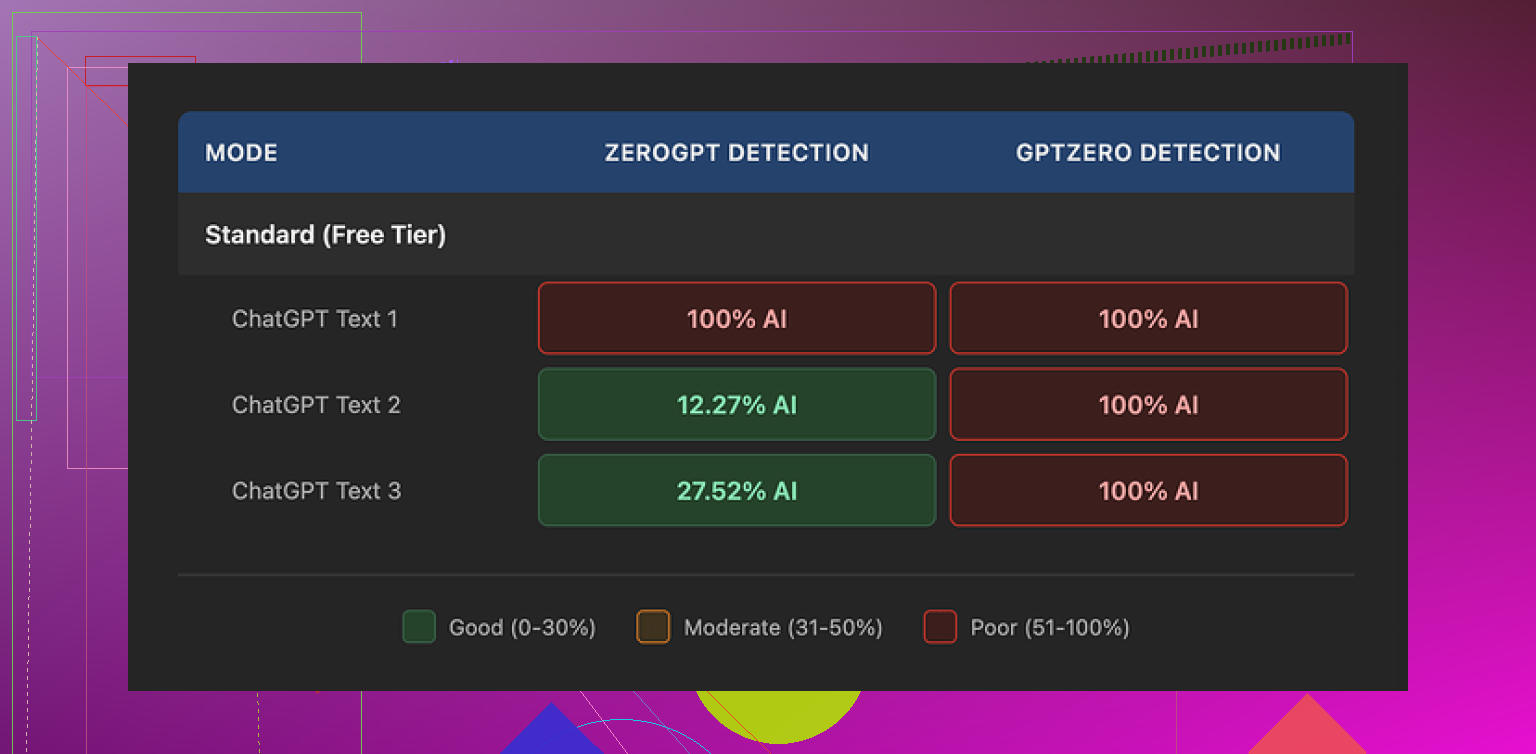 Thing is, “more human” is not automatically “better.” Some of the outputs I got were technically less detectable as AI on weaker tools, but also less usable: